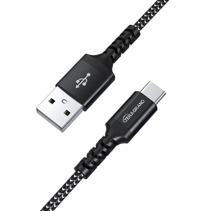 USB 2.0 USB-C to A Braided Cable with Aluminum Housings, Black/White 6'