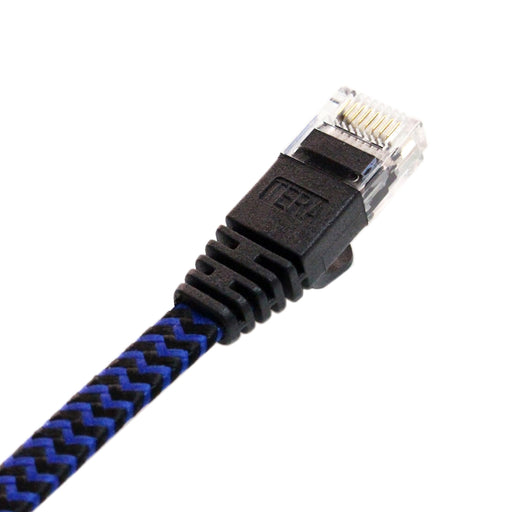 CAT6 10 Gigabit Ethernet Ultra Flat Braided Cable, 6 Feet, Black-Blue