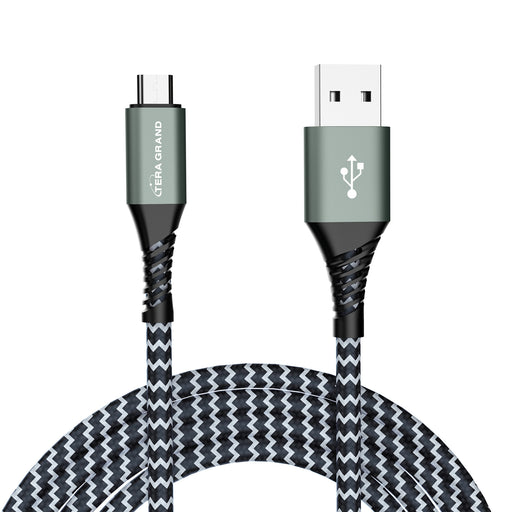 USB 2.0 A to Micro USB Braided Cable, 6' Black/White