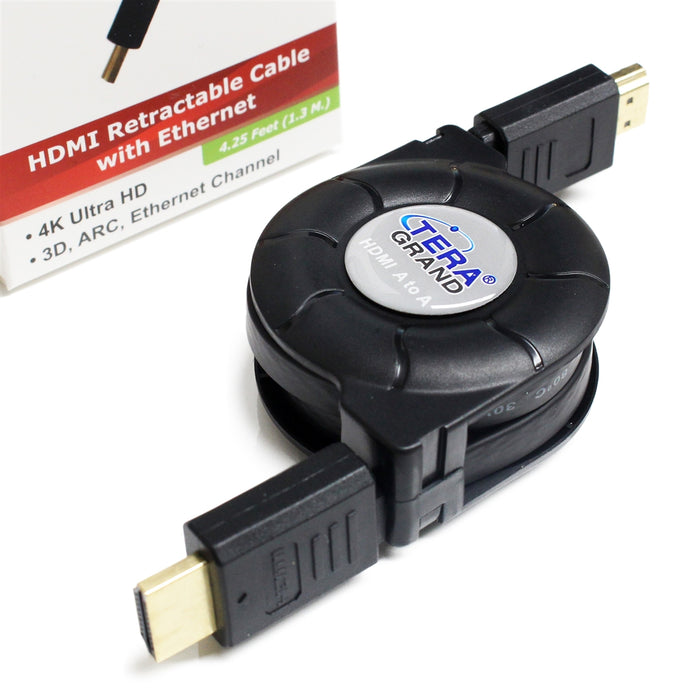Premium 4K High Speed HDMI 2.0 Retractable Cable, Extends up to 4.25 feet - Supports 4K Ultra HD, 3D, ARC, HDR, and Ethernet Channel