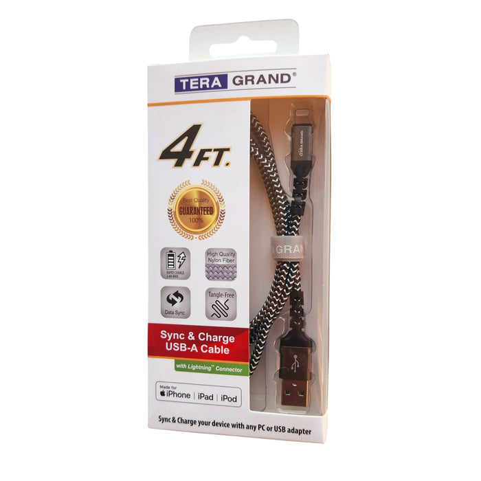 Apple C89 MFi Certified - Lightning to USB-A Braided Cable with Aluminum Housing, 4 Ft Black/White