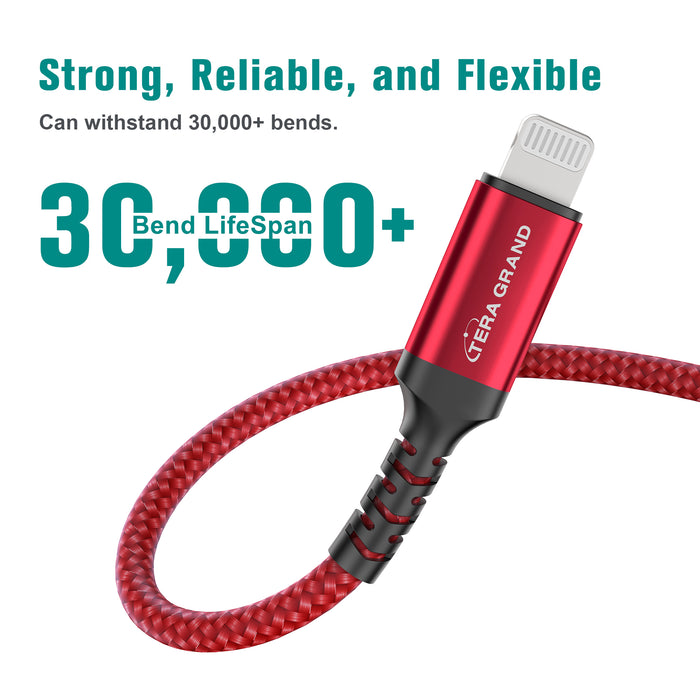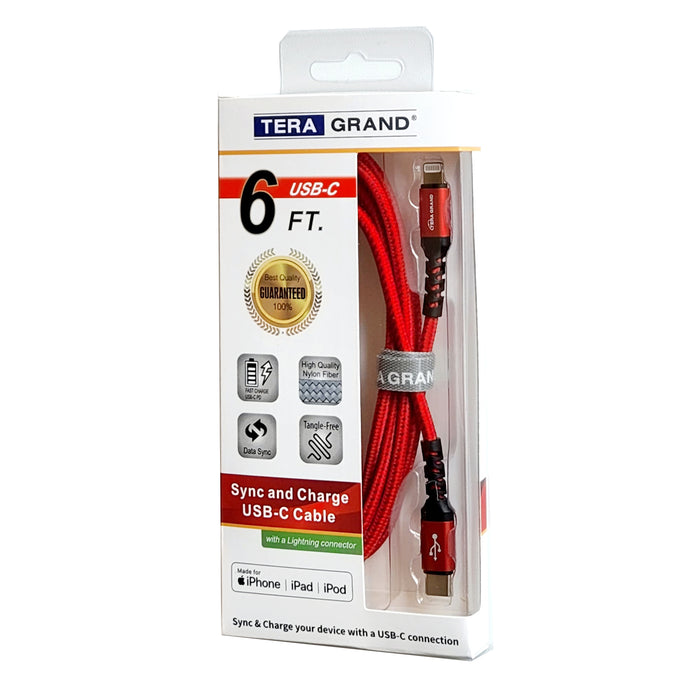 Apple C94 MFi Certified USB-C to Lightning Braided Cable with Aluminum Housing, 6 Ft Red