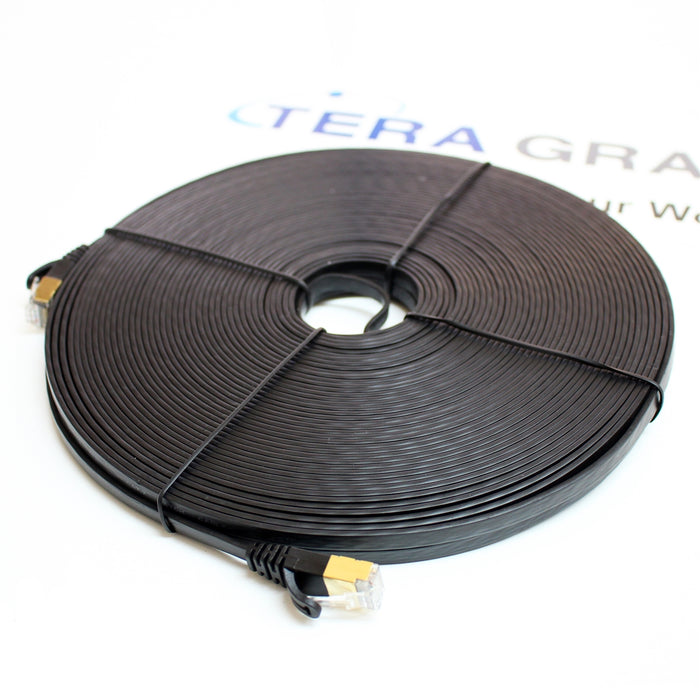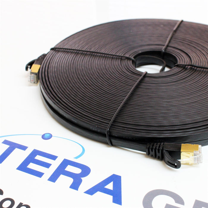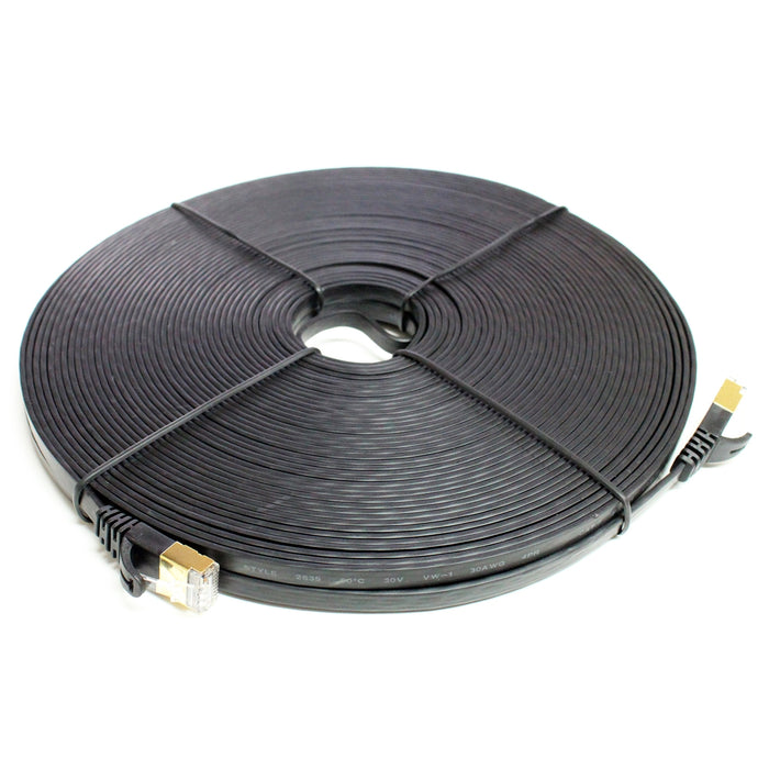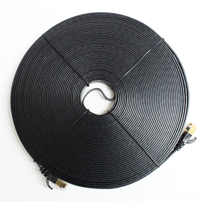 CAT-7 10 Gigabit Ethernet Ultra Flat Patch Cable for Modem Router LAN Network - Built with Shielded RJ45 Connectors, 100 Feet Black