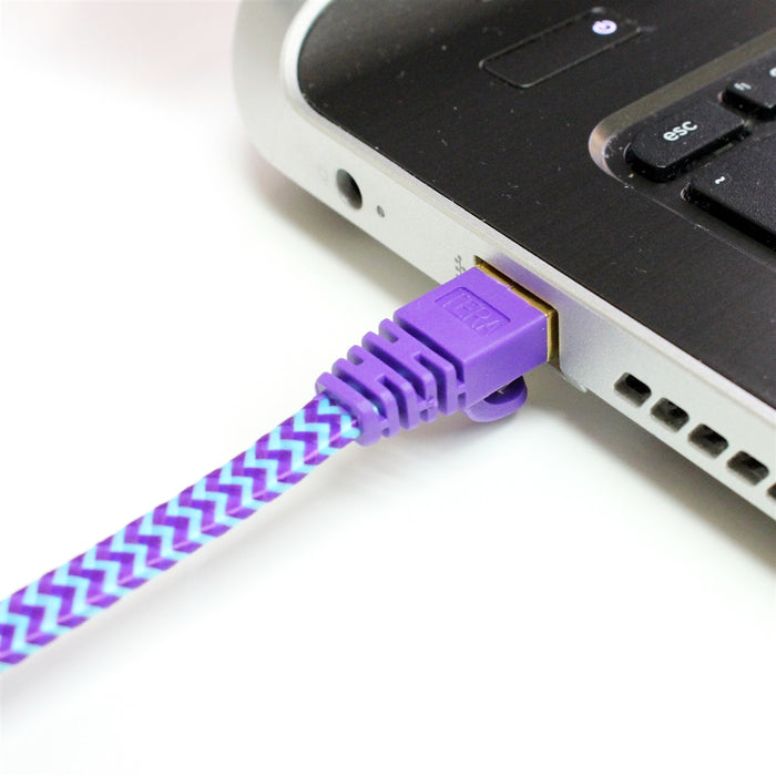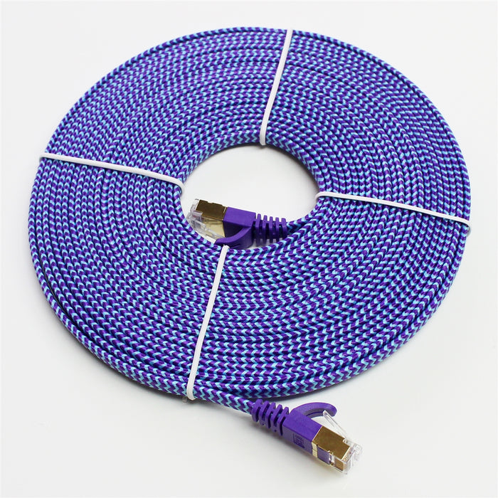 CAT-7 10 Gigabit Ultra Flat Ethernet Patch Braided Cable, 25 Feet Purple & Blue