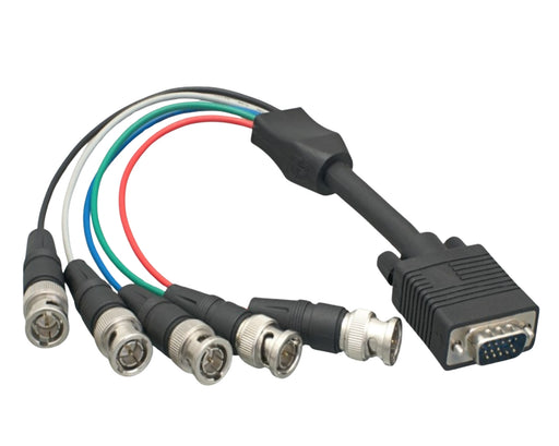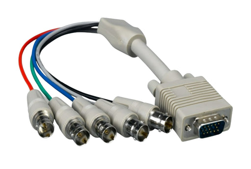 HDB15 Male to BNC Female x5, VGA Monitor Cable, 1 ft.