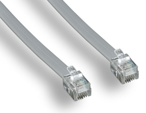 Silver Stain Flat Phone Cable, RJ11 6P4C, 14'