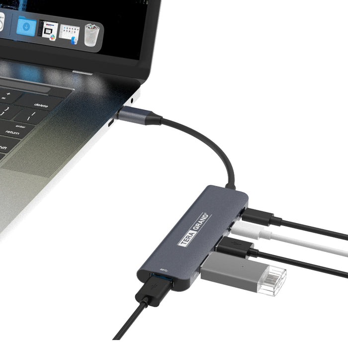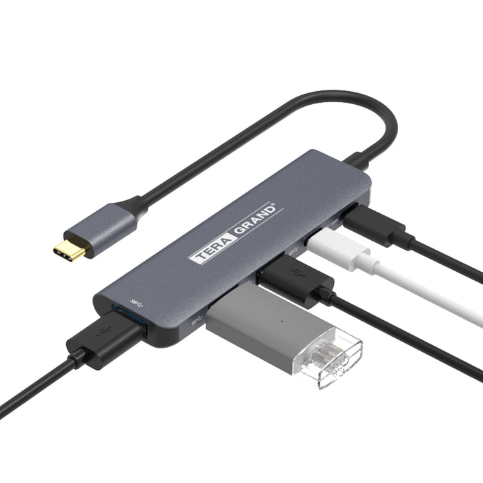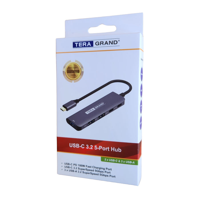USB 3.2 USB-C 5-Port Hub, USB-C PD 100W + USB-C 3.2 5Gbps + 3 x USB-A 3.2 5Gbps, Gray