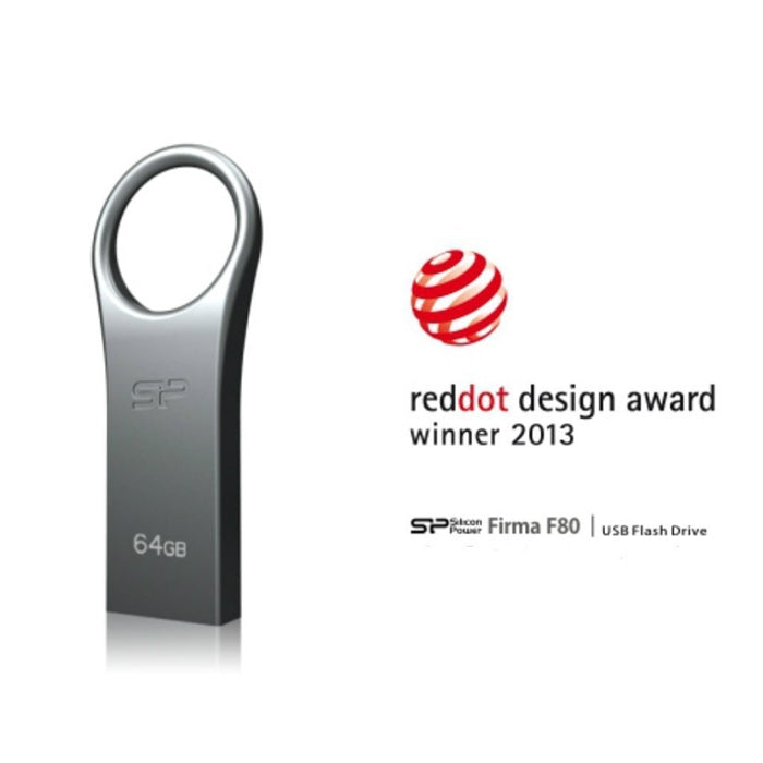 Silicon Power - USB 2.0 Waterproof Flash Drive, Firma F80, Gray Aluminum 64 GB