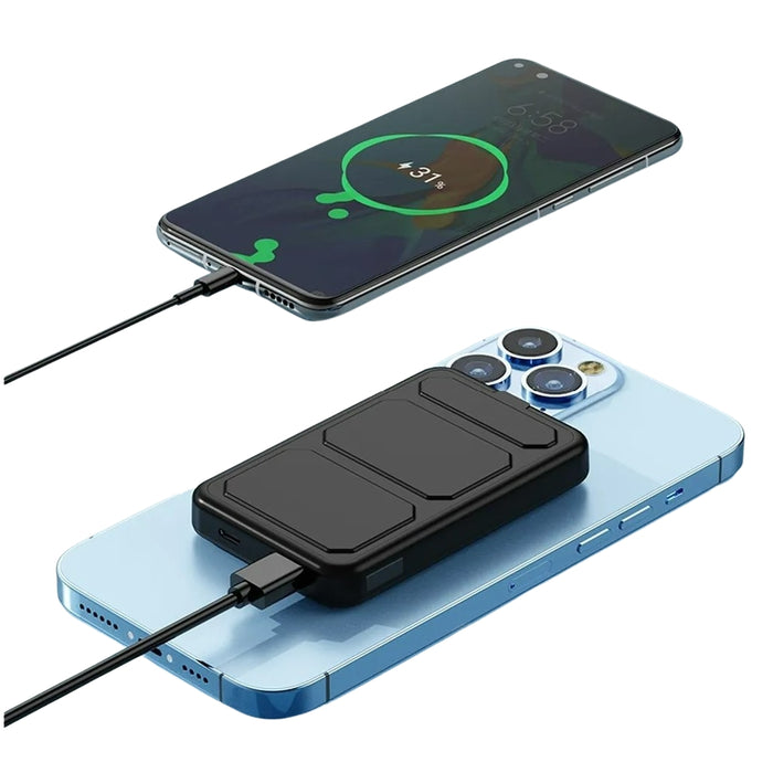- Packaging with a Self-Adhesive Metal Ring: The packaging includes a self-adhesive metal ring, perfect for non-magnetic phones. Easily attach the metal ring to your device, enabling it to take advantage of the magnetic wireless charging feature offered by the power bank.