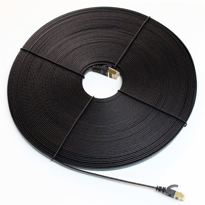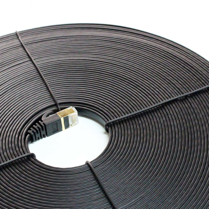 CAT-7 10 Gigabit Ethernet Ultra Flat Patch Cable for Modem Router LAN Network - Built with Shielded RJ45 Connectors, 75 Feet Black