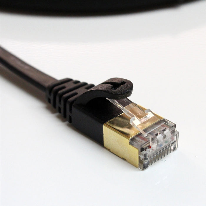 CAT-7 10 Gigabit Ultra Flat Ethernet cable, slim and flexible, easy to fit into the tightest spaces Made of 100% bare copper wire and 50 micron gold plated RJ45 connectors Perfect for network adapters, hubs, routers, DSL/cable modems, PS3, PS4, X-box, patch panels and other high performance networking applications Achieves higher performance than preceding CAT-5e and CAT6 cables - Supports: 10GBASE-T; 1000 BASE-T; 100 BASE-T; 10 BASE-T Backwards compatible with traditional CAT-5e and CAT-6 Ethernet cables and networks