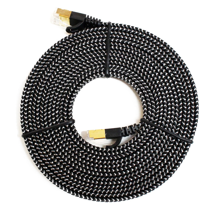 CAT-7 10 Gigabit Ultra Flat Ethernet Patch Braided Cable, 12 Feet Black & White