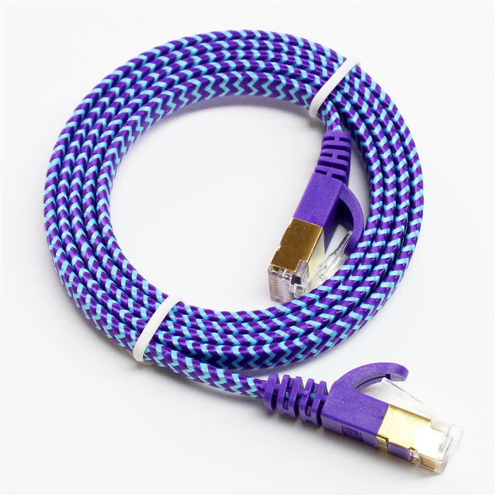 CAT-7 10 Gigabit Ultra Flat Ethernet Patch Braided Cable, 3 Feet Purple & Blue