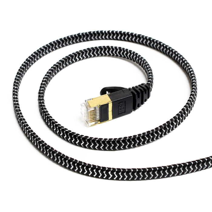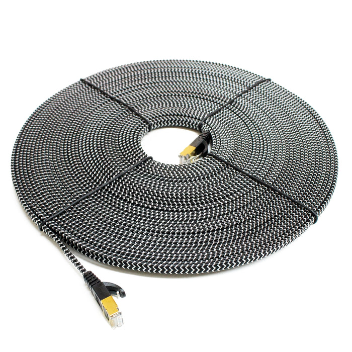 CAT-7 10 Gigabit Ultra Flat Ethernet Patch Braided Cable, 50 Feet Black & White