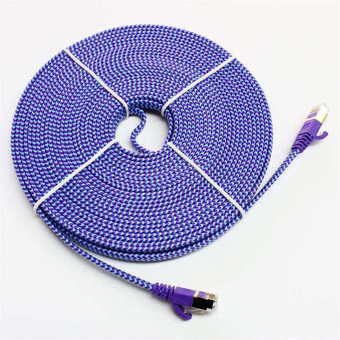 CAT-7 10 Gigabit Ultra Flat Ethernet Patch Braided Cable, 50 Feet Purple & Blue