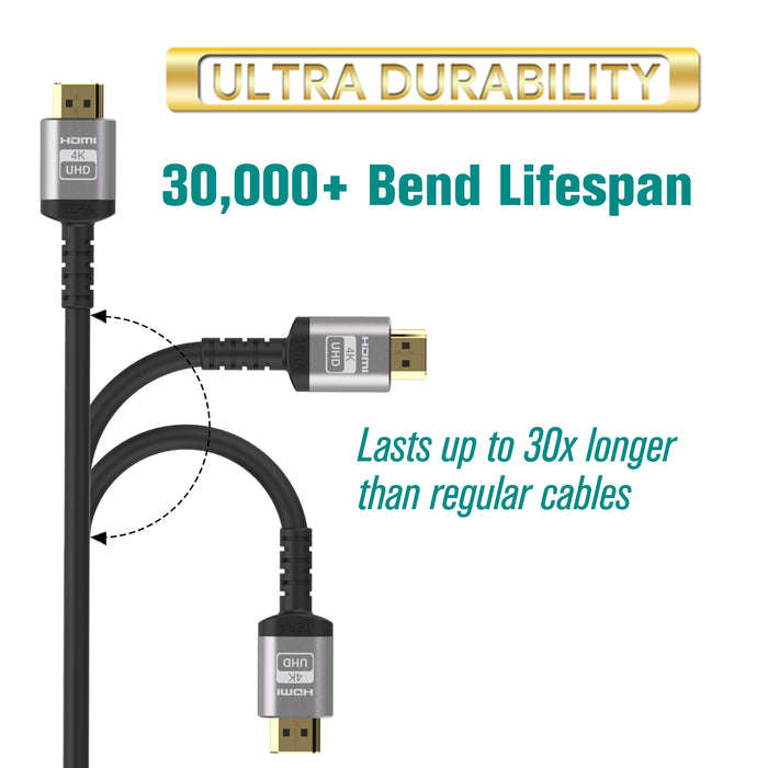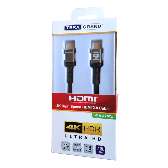 HD-4K18G-10Tera Grand Premium High-Speed HDMI Cables are designed to support the latest HDMI 2.0b features, including 3D, 4K Ultra HD, HDR, Dolby Vision HDR, Audio Return Channel, Dolby TrueHD, and DTS-HD Master Audio™. These cables deliver full HDMI 2.0 specifications, providing 4K UHD at 60Hz, 18Gbps bandwidth, HDR, Dolby Vision, RGB 4:4:4 Chroma, and HDCP 2.2 compatibility for an exceptional audio and visual experience.