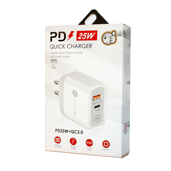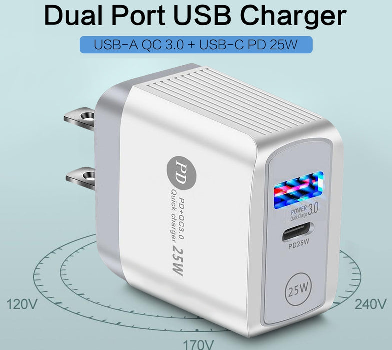 25W USB-C Wall Charger, Dual Port QC 3.0 USB-A + USB-C PD 25W