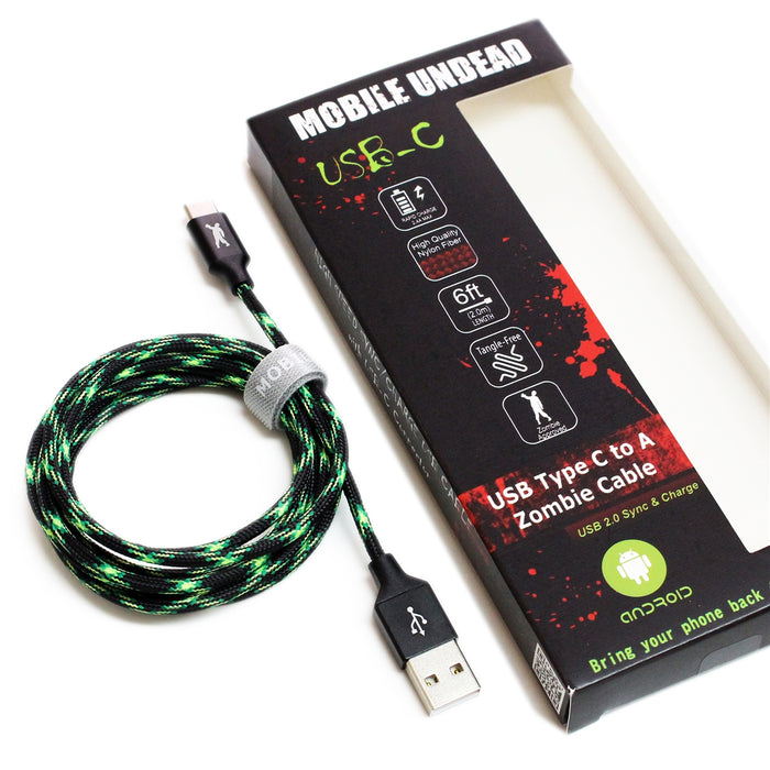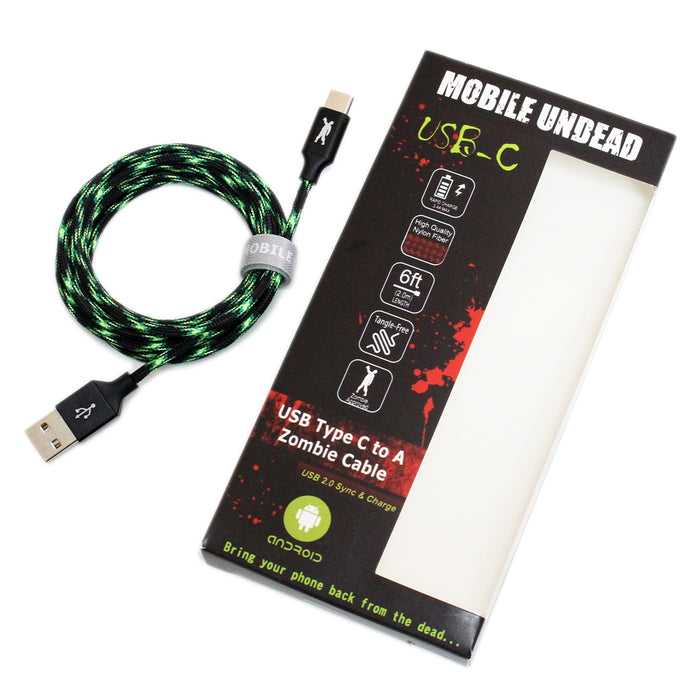 Mobile Undead - High Speed USB 2.0 USB-C to A Sync and Charge Zombie Cable, 6 Ft.