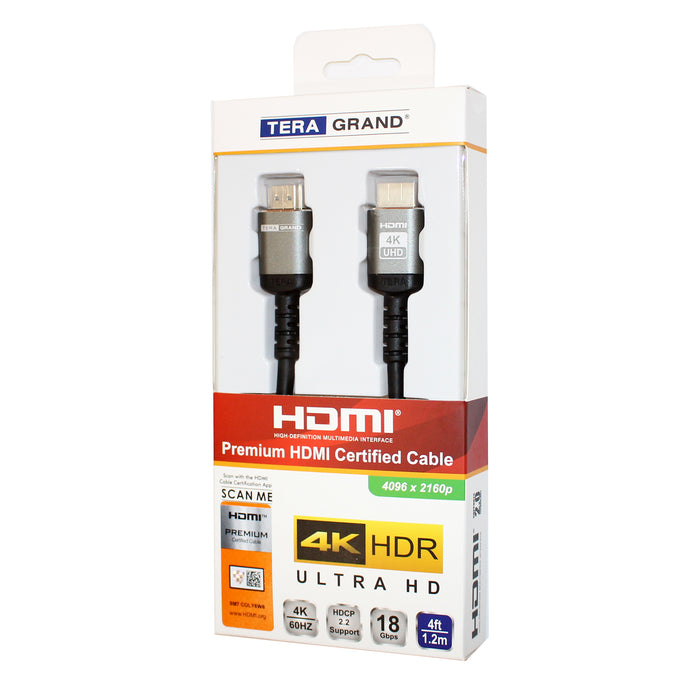 4K Premium HDMI Cable with Aluminum housing, Supports HDMI 2.0 4K HDR Ultra HD, 18 Gbps, 4K 60Hz, 4 Feet