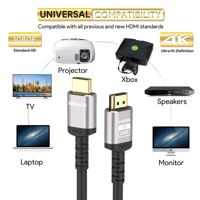 HD-4K18G-04Tera Grand Premium High-Speed HDMI Cables are designed to support the latest HDMI 2.0b features, including 3D, 4K Ultra HD, HDR, Dolby Vision HDR, Audio Return Channel, Dolby TrueHD, and DTS-HD Master Audio™. These cables deliver full HDMI 2.0 specifications, providing 4K UHD at 60Hz, 18Gbps bandwidth, HDR, Dolby Vision, RGB 4:4:4 Chroma, and HDCP 2.2 compatibility for an exceptional audio and visual experience.