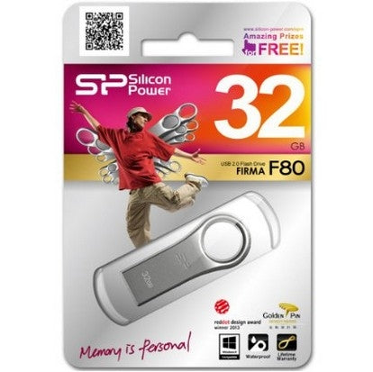 Silicon Power - USB 2.0 Waterproof Flash Drive, Firma F80, Gray Aluminum 32 GB