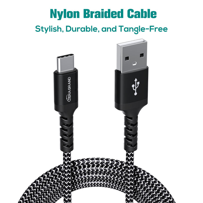 USB 2.0 USB-C to A Braided Cable with Aluminum Housings, Black/White 6'