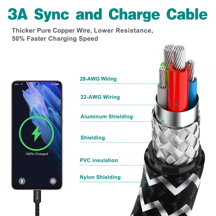 Fast Charging & Data Transfer: 5V/3A 15W charging and 480Mbps data transfer speed (Not compatible with Power Delivery).